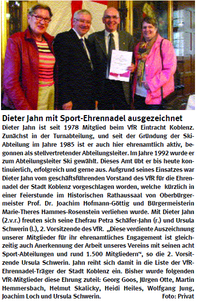 Zur Verleihung der Sportehrennadel der Stadt Koblenz