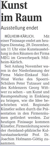 29.12.2009: Ausstellungsende Mülheim-Kärlich “Kunst und Raumgestaltung im Einklang”