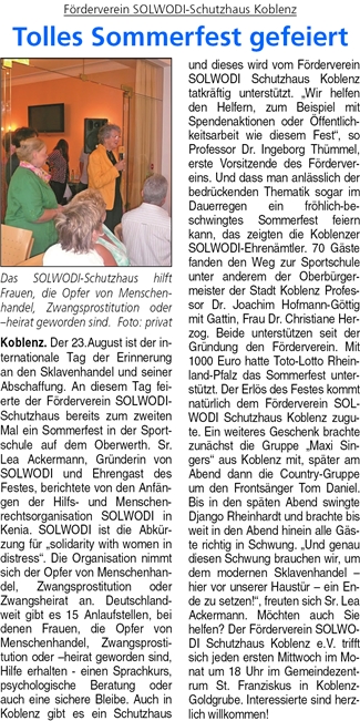 Zum Sommerfest des Koblenzer Fördervereins SOLWODI-Schutzhaus