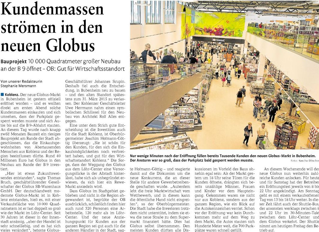 Deutschlandweit modernster neuer Globus-Markt in Koblenz-Bubenheim eröffnet: Gut für Wirtschaftsstandort, so OB Hofmann-Göttig