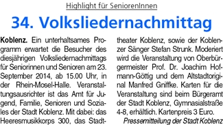 23.09.2014: Koblenzer Volksliedernach-mittag für Seniorinnen und Senioren