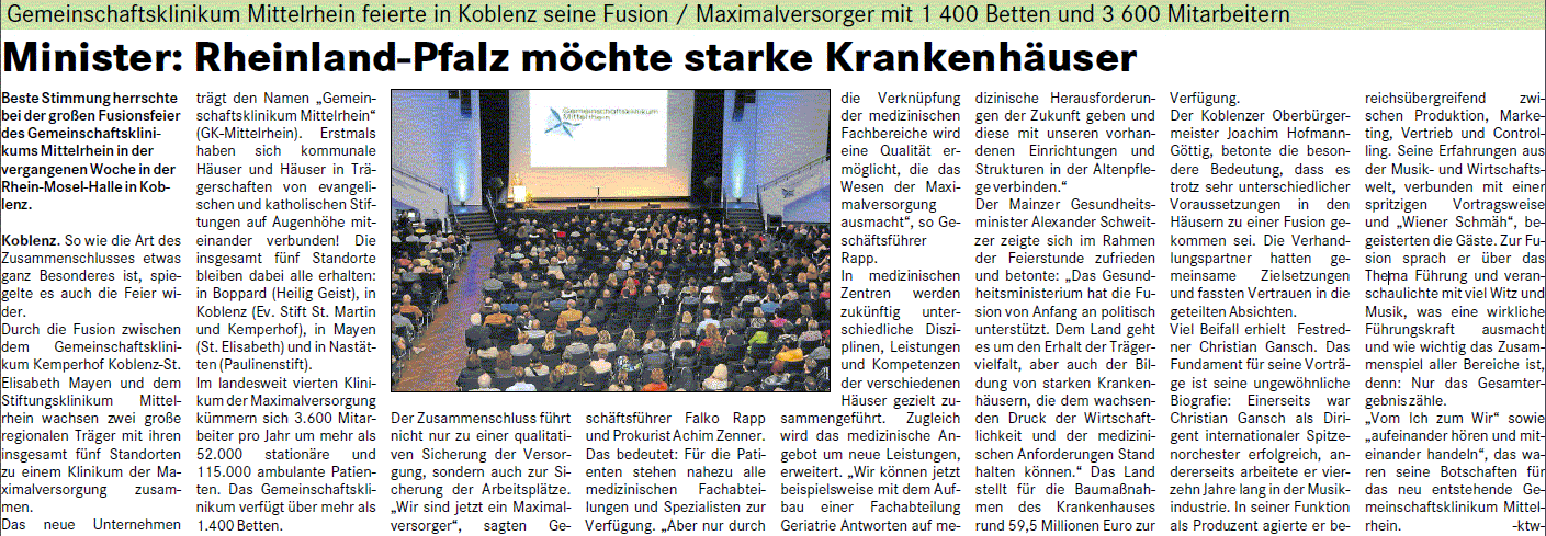 Zur Fusionsfeier des neuen Gemeinschafts-klinikums Mittelrhein