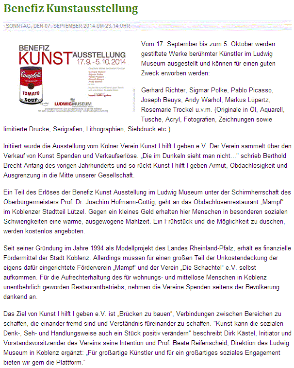 17.09.-05.10.2014: Koblenzer Benefiz-Ausstellung