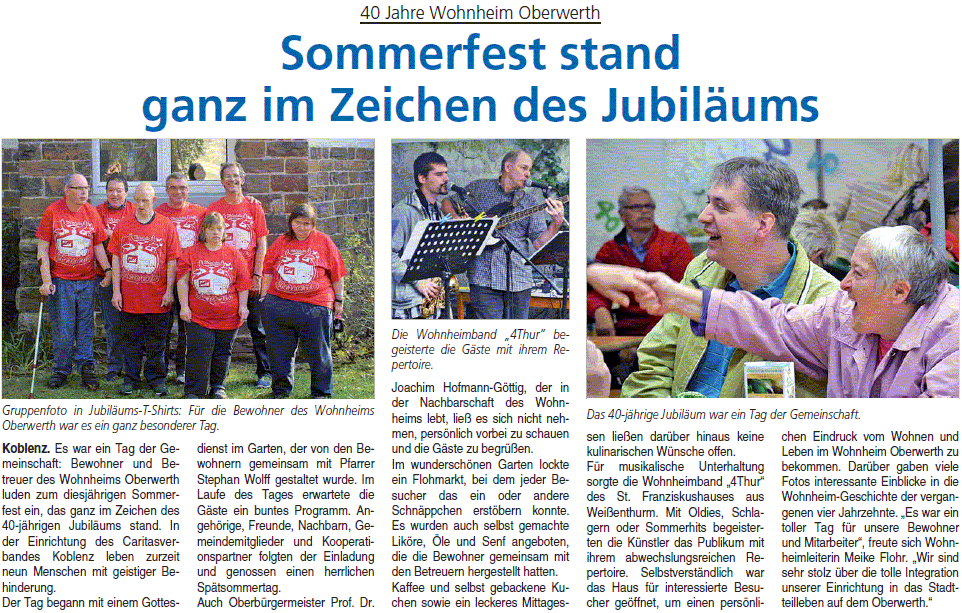 Sommerfest 40 Jahre Wohnheim Koblenz-Oberwerth
