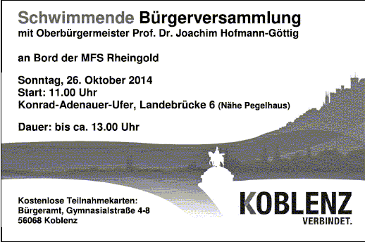26.10.2014: “Schwimmende” Koblenzer Bürgerversammlung – OB Hofmann-Göttig zieht Bilanz und gibt Ausblick