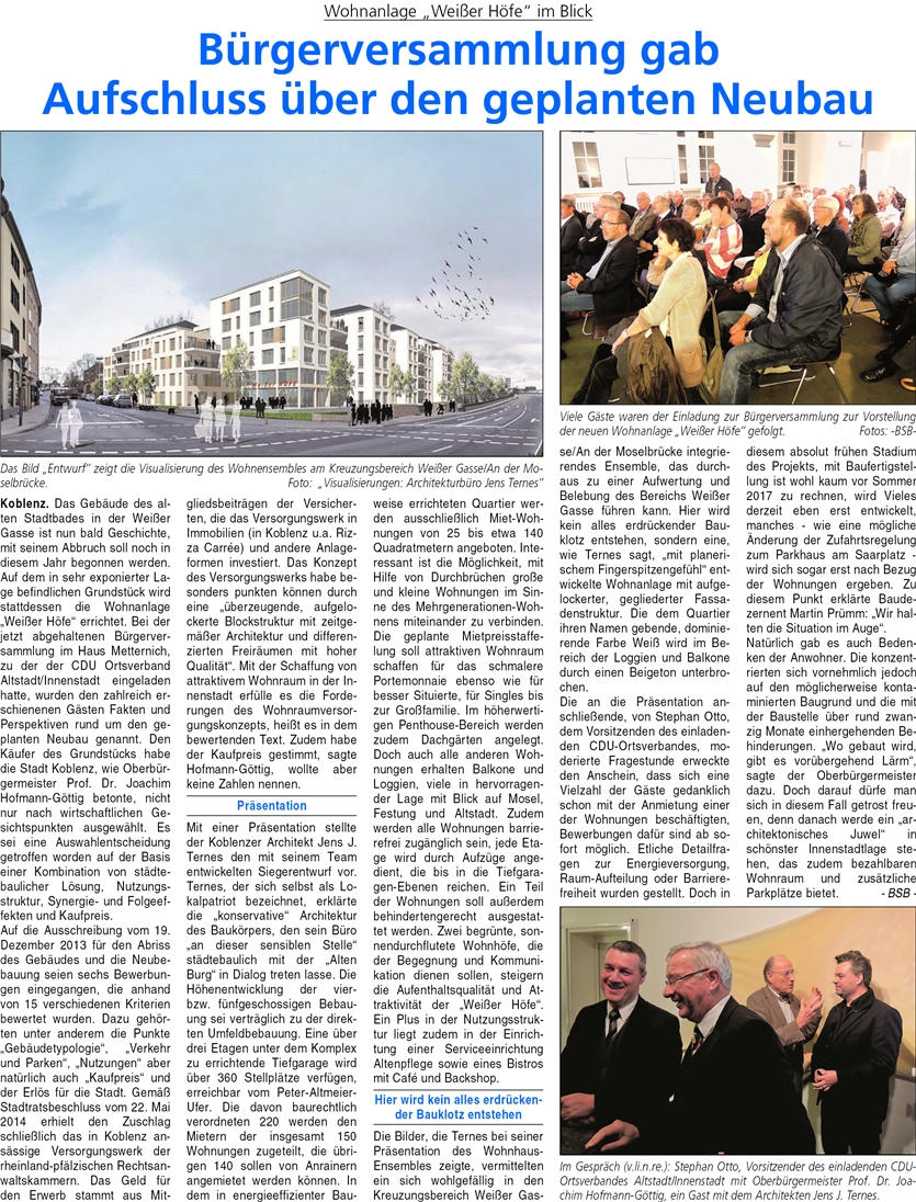 Bürgerversammlung erfuhr viel über geplanten Neubau Koblenz “Weißer Höfe”
