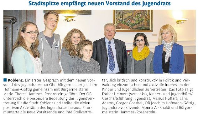 Neuer Koblenzer Vorstand-Jugendrat sprach mit OB Hofmann-Göttig und Bürgermeisterin Hammes-Rosenstein
