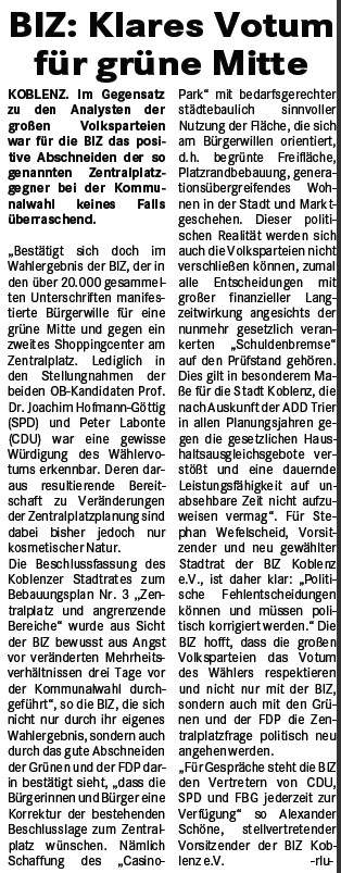 Hofmann-Göttig respektiert Wählervotum bei Kommunalwahl für BIZ