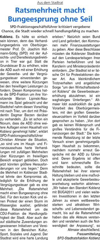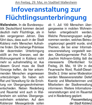 Wortlauit der Pressemeldung der Stadt Koblenz, 22.5.2015