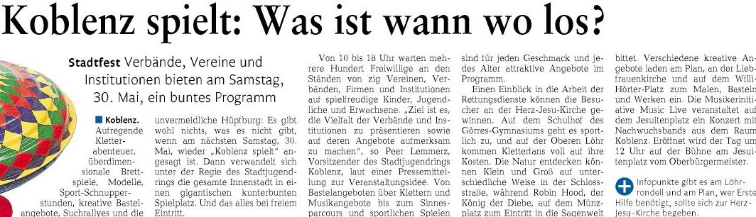 Rhein-Zeitung, Koblenz, 22.05.2015, S. 57; Beilage Rhein-Zeitung “Wir von Hier”, Koblenz u.a., 3. Jahrgang, Nr. 20, S.23
