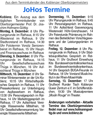 Montag 08.12.2014: Auszug aus Terminen von OB Hofmann-Göttig (ansonsten weitere Termine in Koblenz)