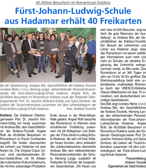 Auszug: Wortlaut und Foto der Pressemeldung der Stadt Koblenz, 08.12.2014