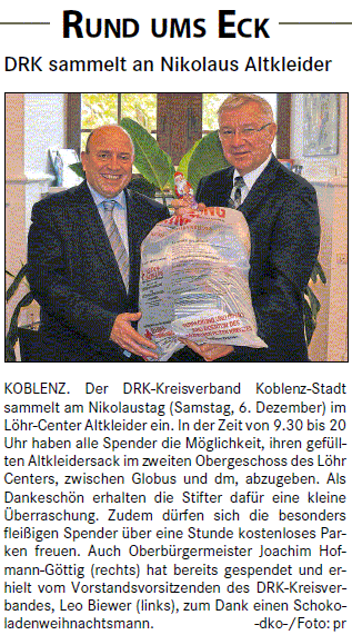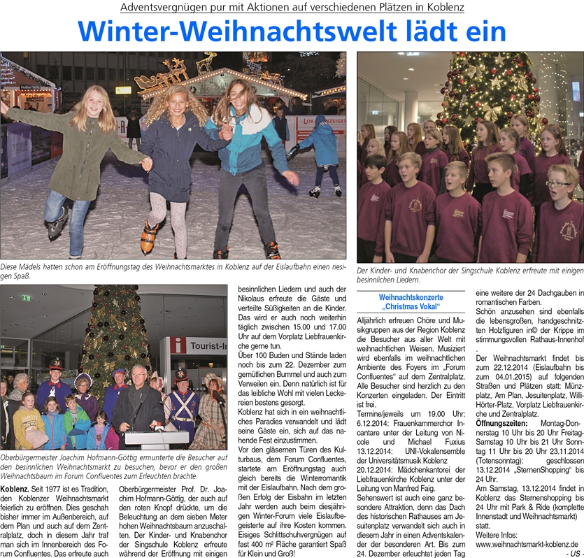 Auszug: Wortlaut und Foto der Pressemeldung der Stadt Koblenz, 04.12.2014