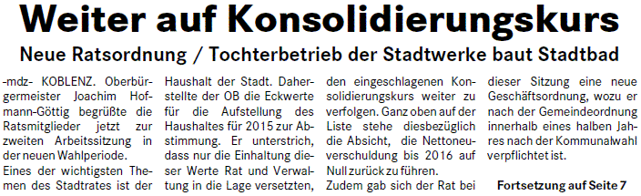 Wortlaut der Pressemeldung der Stadt Koblenz, 09.10.2014