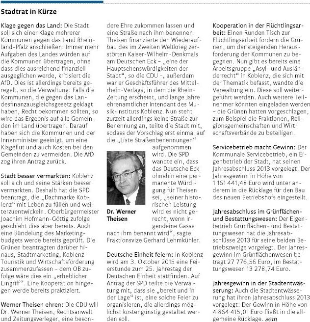 Rhein-Zeitung, Koblenz, 09.10.2014, S. 15