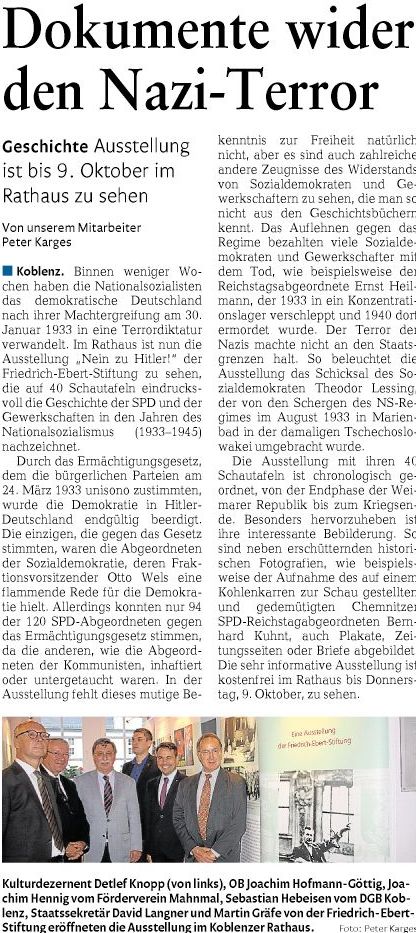 Wortlaut und Foto der Pressemeldung der Stadt Koblenz, 05.09.2014