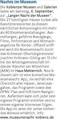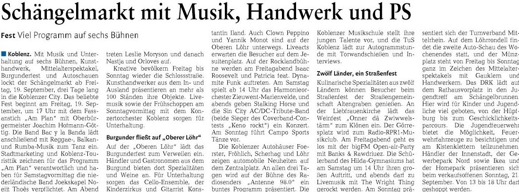 Rhein-Zeitung, Koblenz, 05.09.2014, S. 17; S. 19