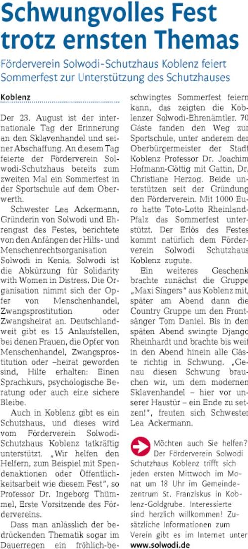 Auszug: Rhein-Zeitung, Koblenz, 05.09.2014, S. 16