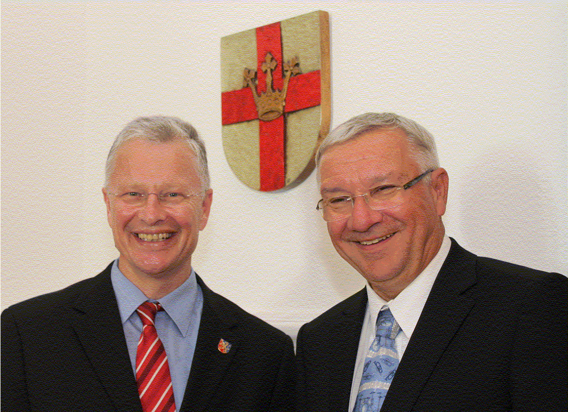 Landtagsabgeordneter Frank Puchtler (links im Bild) besuchte Oberbürgermeister Prof. Dr. Joachim Hofmann-Göttig im Rathaus.