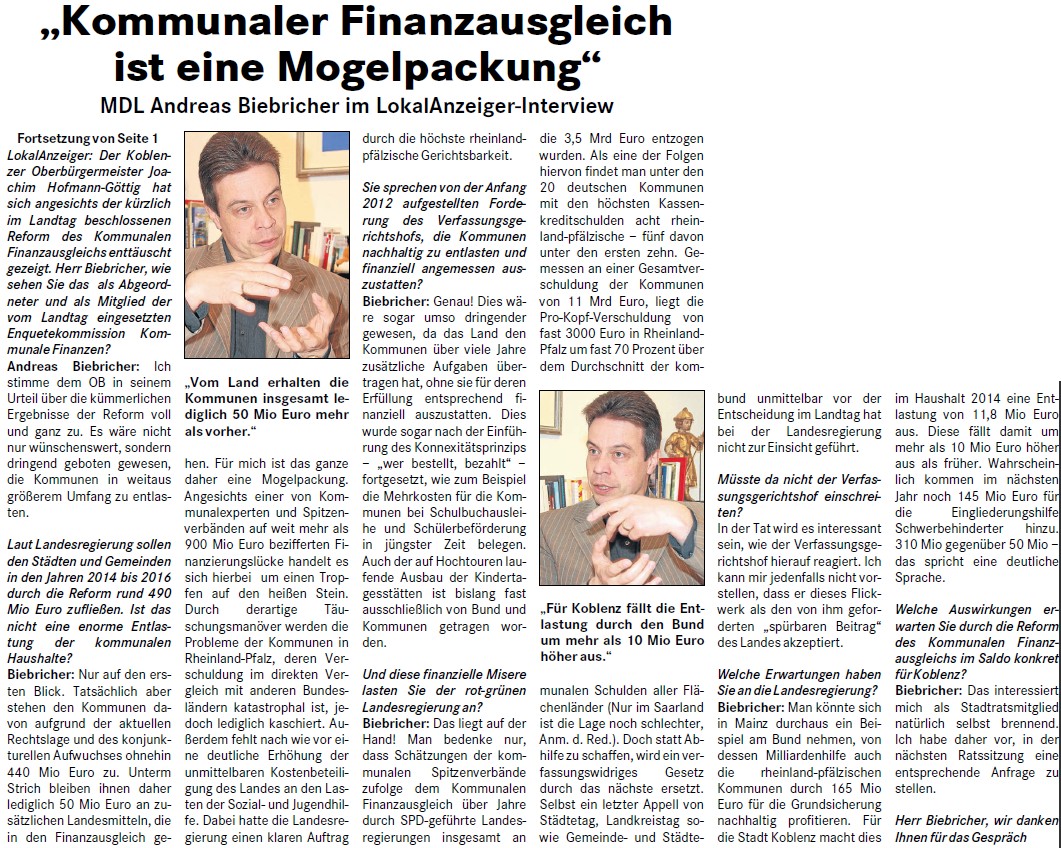 Auszug: LokalAnzeiger Der Schängel, Koblenz, 09.10.2013, S.1