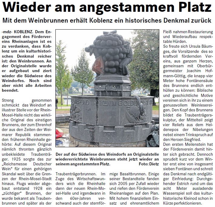 Wortlaut und Foto der Pressemeldung der Stadt Koblenz, 09.10.2013