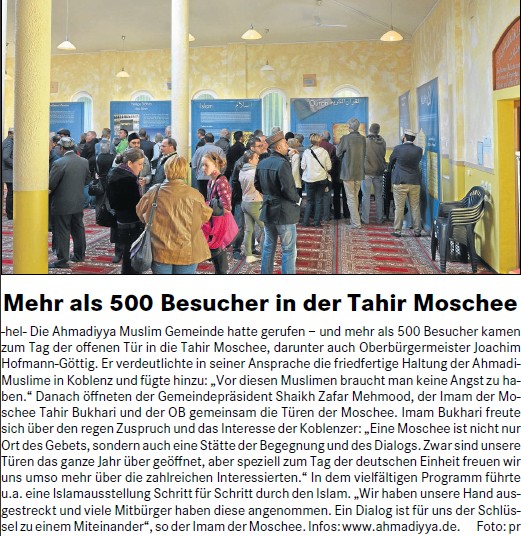 Tag der offenen Tür der Koblenzer Tahir-Moschee ein großer Erfolg