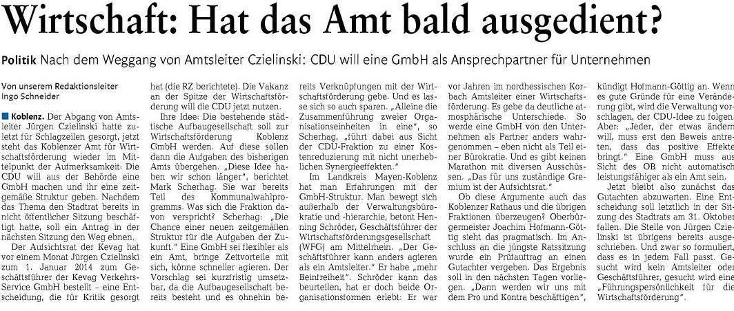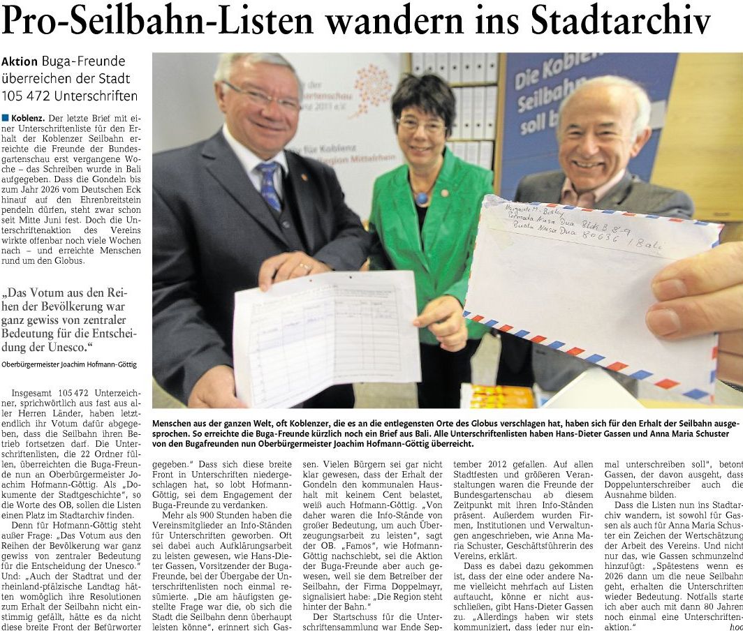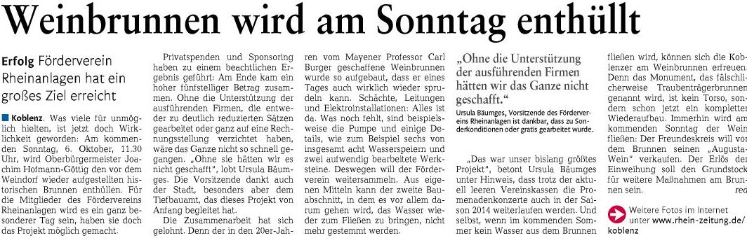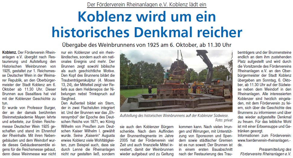 Wortlaut und Foto der Pressemeldung der Stadt Koblenz, 30.09.2013