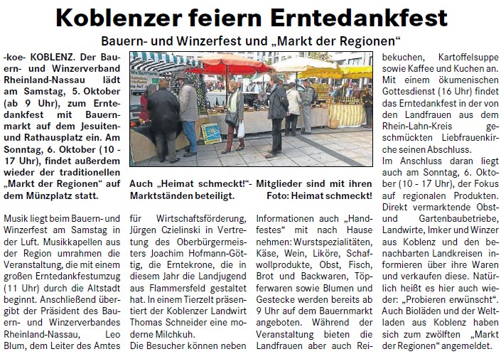 Rhein-Zeitung, Koblenz, 04.10.2013, S. 47; Beilage Rhein-Zeitung “Wir von Hier”, Koblenz u.a., 1. Jahrgang, Nr. 38, S.5