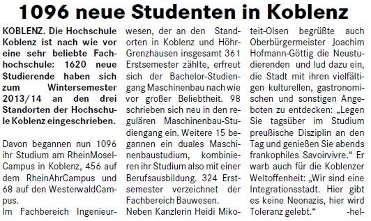 Auszug: Rhein-Zeitung, Koblenz, 01.10.2013, S. 16