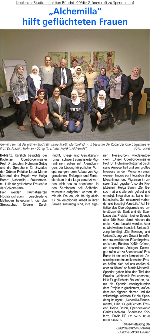 Auszug: Fotos und Wortlaut der Pressemeldung der Stadt Koblenz, 15.11.2017