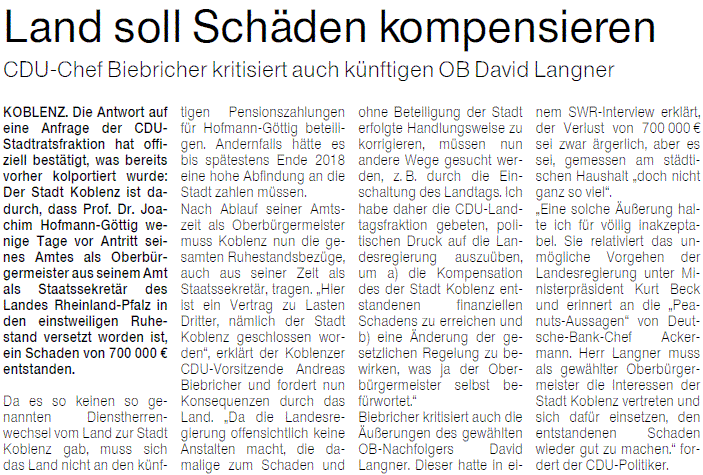 Auszug: Rhein-Zeitung, Koblenz, 14.11.2017, S. 12
