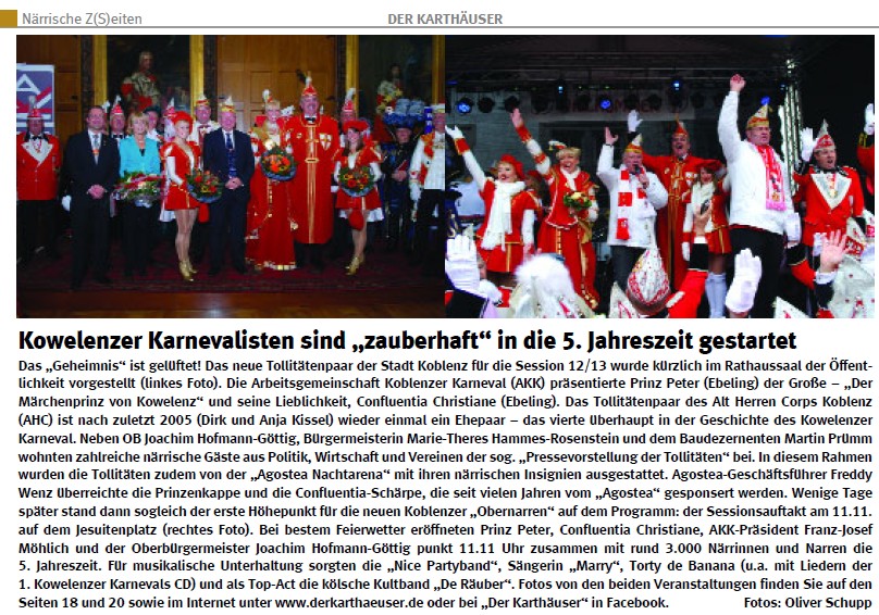 Wortlaut des Grußworts von OB Hofmann-Göttig zur Prinzensession 2012/13, Koblenz, November 2012