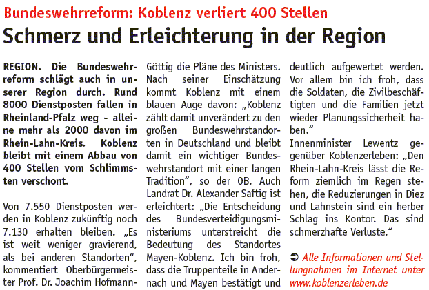 Auszug: KoblenzErleben Die Zeitung 28.10.2011, S.6