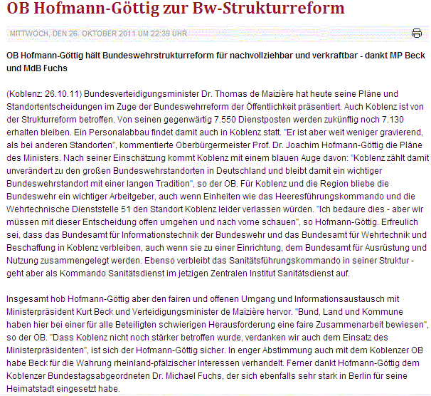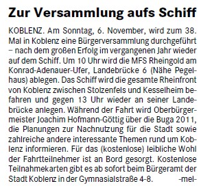 Wortlaut der Presseinformation der Stadt Koblenz, 28.10.2011