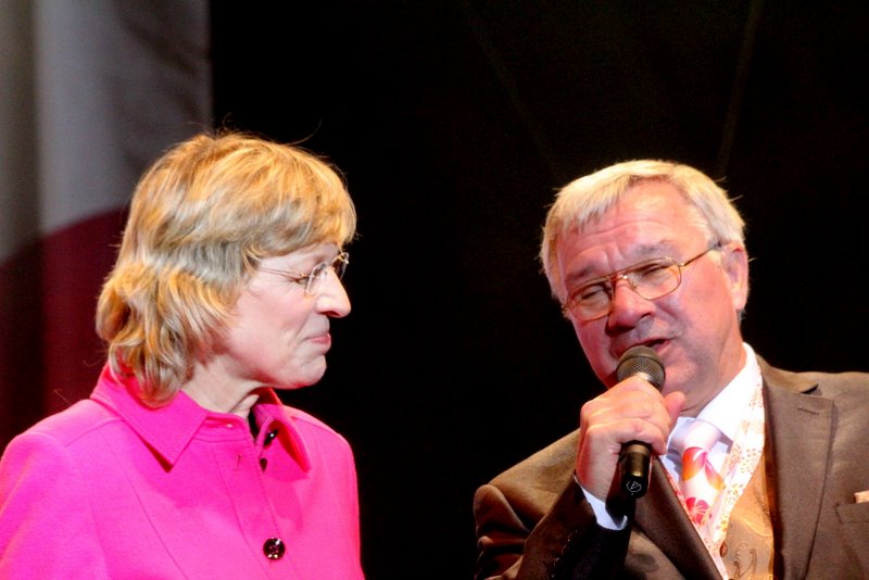 v.l.: Comedian Ernst, ZVG.-Präsident Heinz Herker, Ministerpräsident Kurt Beck, die zweite Hamburger Bürgermeisterin Dr. Dorothee Stapelfeldt, Oberbürgermeister Prof. Dr. Joachim Hofmann-Göttig und Comedian Willi.
