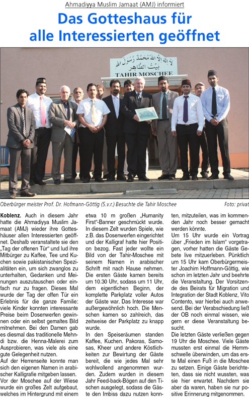 Wortlaut und Foto der Presseinformation der Stadt Koblenz, 18.10.2011