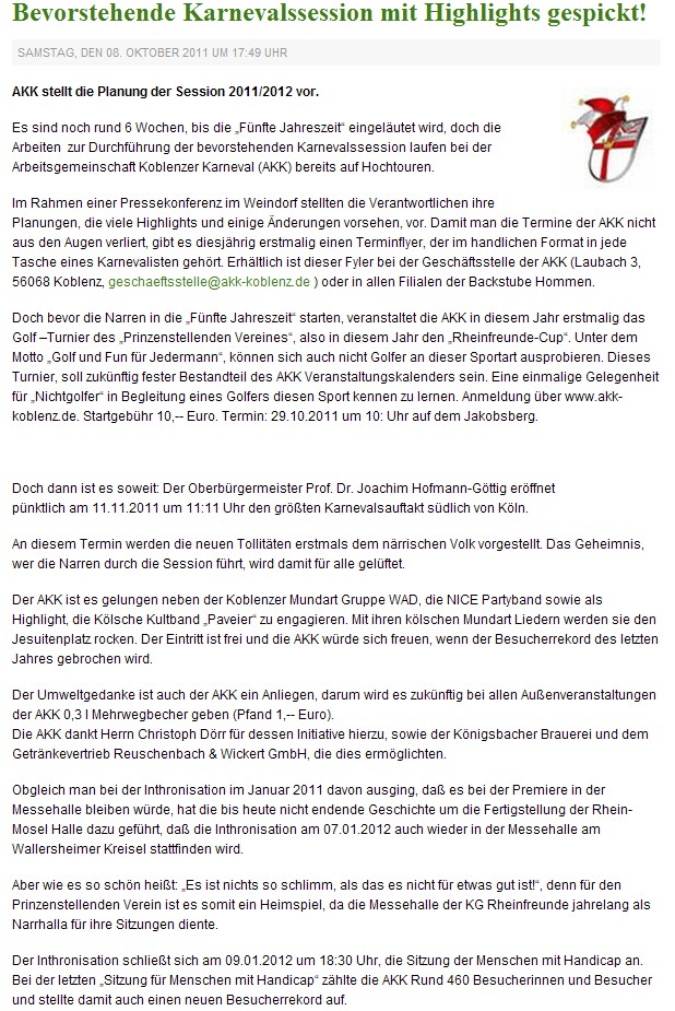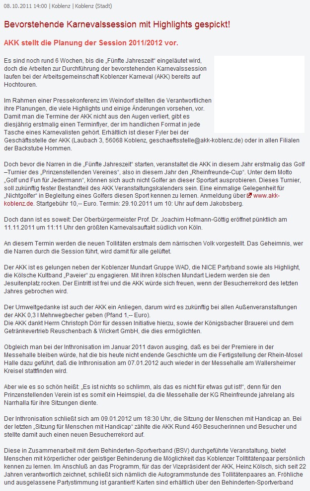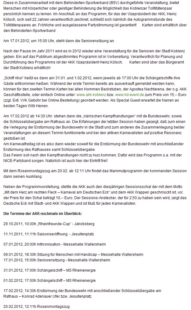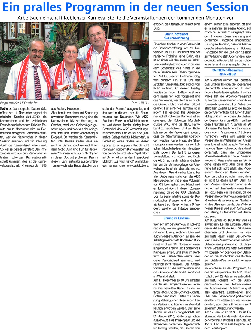 Auszug: KoblenzErleben Die Zeitung 07.10.2011, S.16