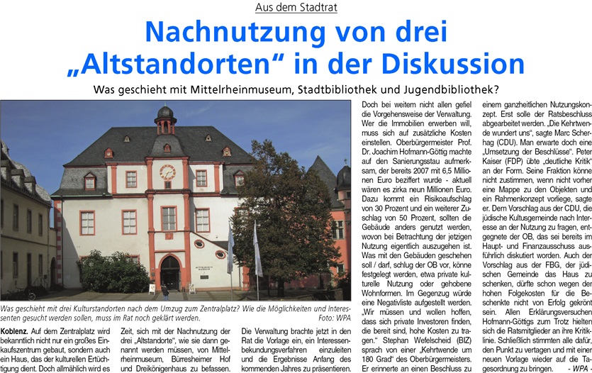 Mit Stellungnahmen des neuen Koblenz-Touristik Chefs Andreas Bilo und OB Hofmann-Göttig