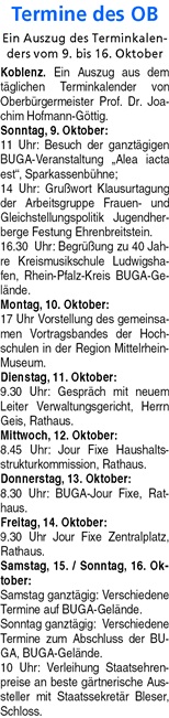 Donnerstag 06.10.2011: Auszug aus Terminen von OB Hofmann-Göttig (ansonsten weitere Termine in Koblenz):