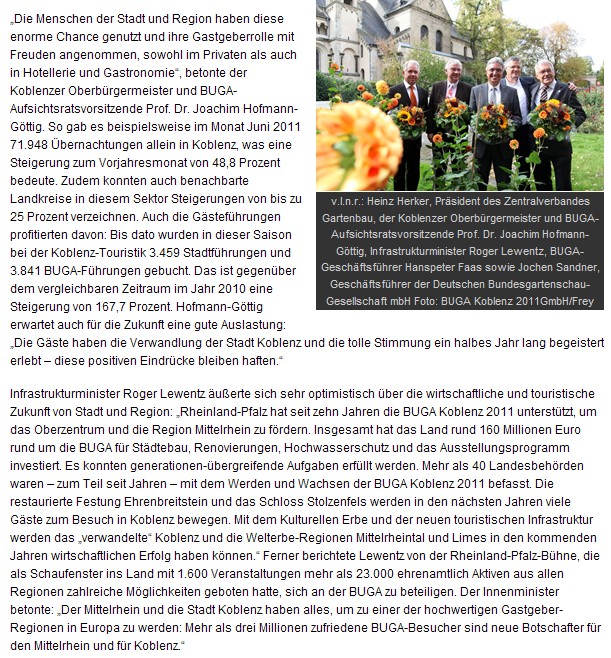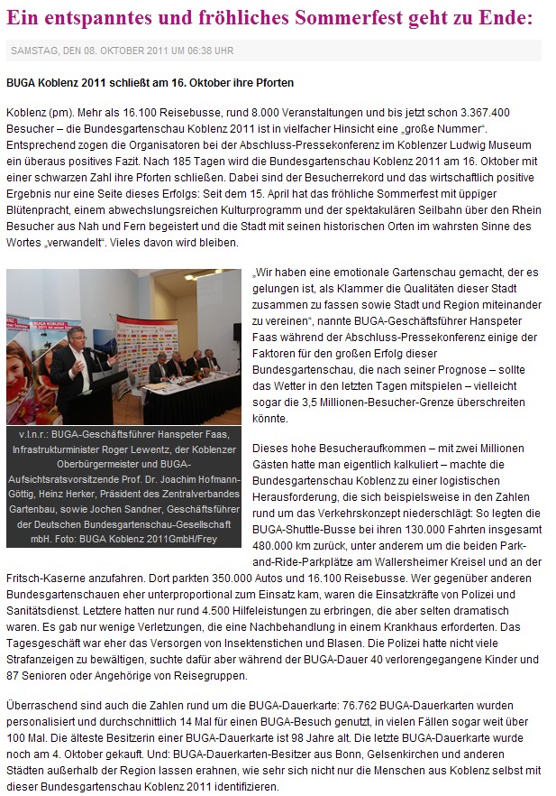Auszug aus dem Wortlaut und Fotos der Pressemitteilung der BuGa Koblenz 2011 GmbH, Koblenz 07.10.2011