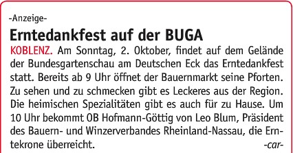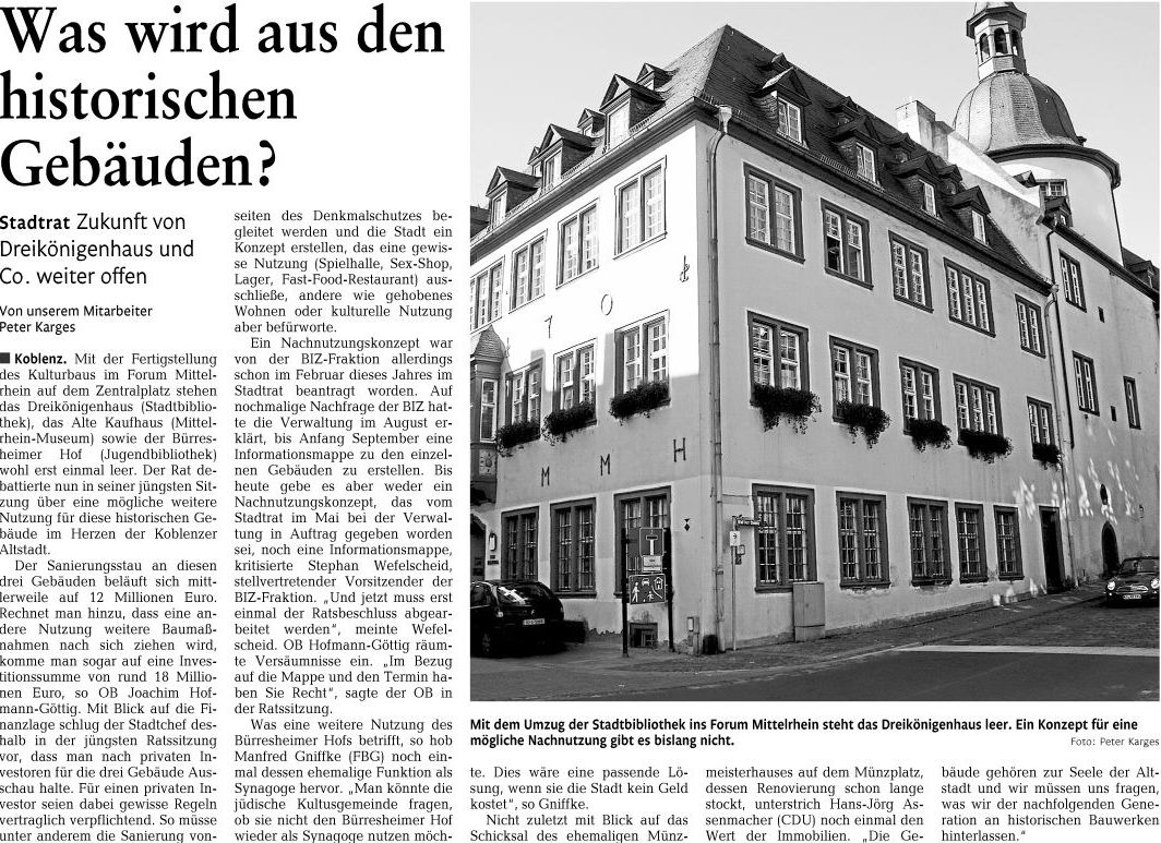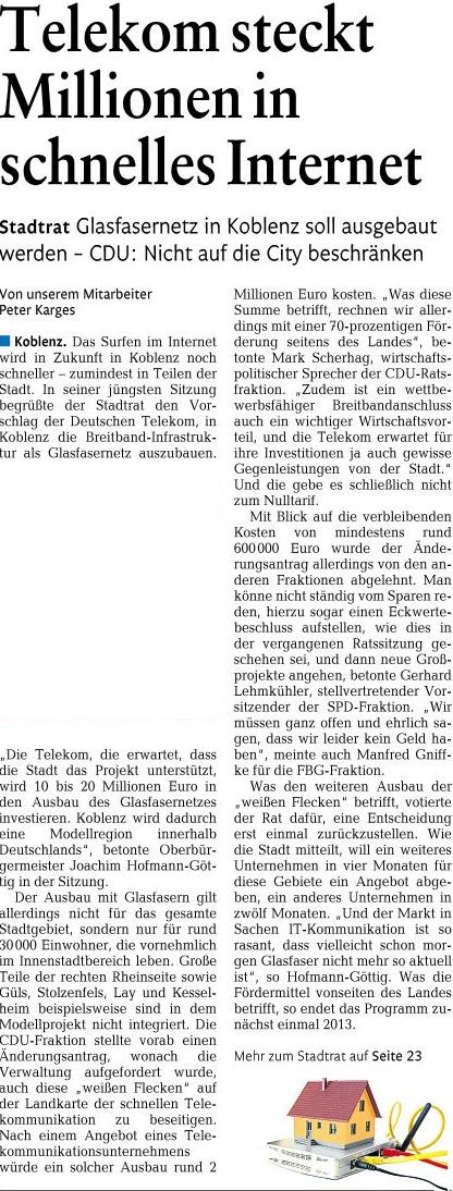 Auszug: Rhein-Zeitung, Koblenz, 01.10.2011, S.21