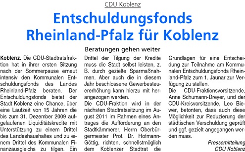 Analog der Presseeinladung der Stadt Koblenz vom 09.08.2011: