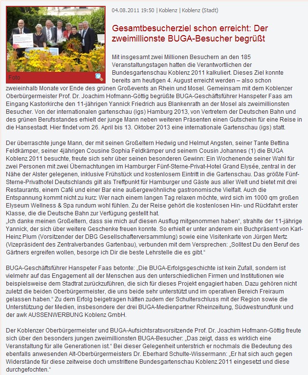 Entsprechend einer Presseeinladung der Stadt Koblenz, 09.08.2011: