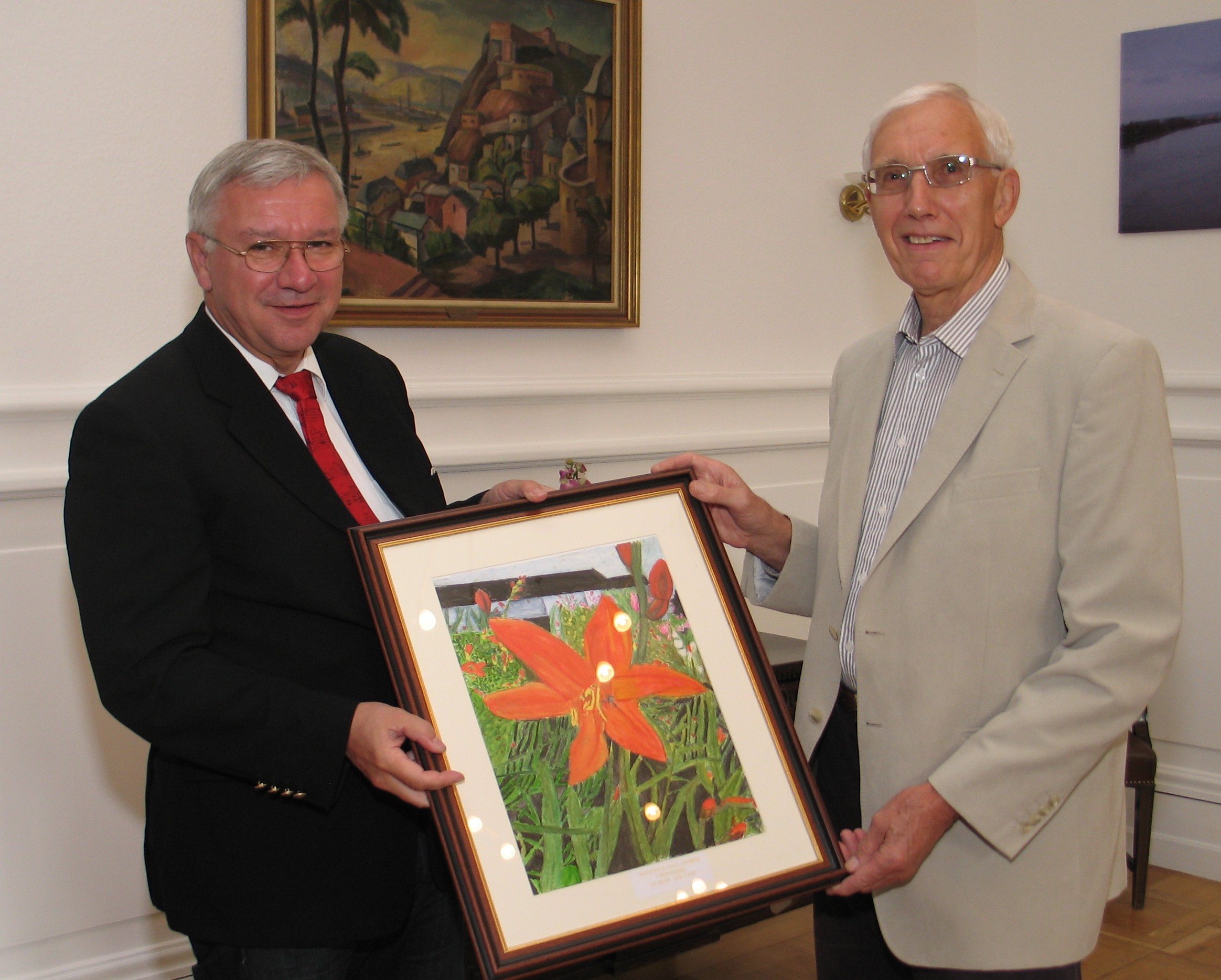 (Koblenz: 21.07.11) Chris Southgate (rechts im Bild), ehemaliger Bürgermeister der Koblenzer Partnerstadt Norwich, besuchte Oberbürgermeister Prof. Dr. Joachim Hofmann-Göttig. Southgate ist heute ein engagiertes Mitglied des Freundschaftskreises Norwich-Koblenz und hat unter anderem an der Planung und Realisierung des BUGA-Gartens der Stadt Norwich am Blumenhof mitgewirkt.