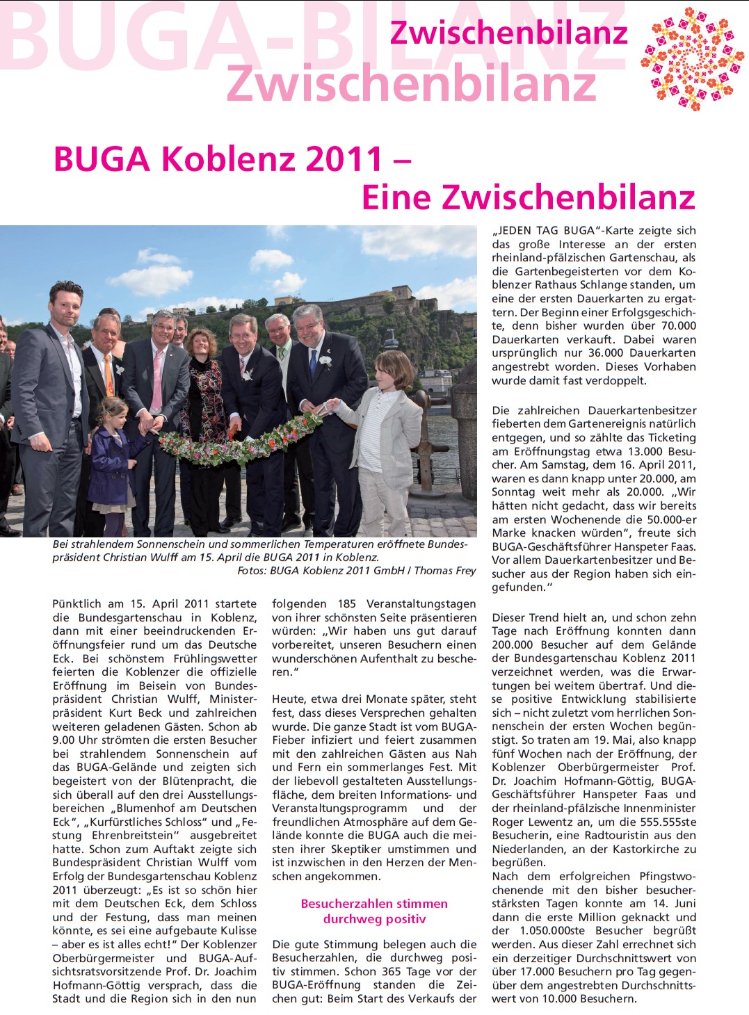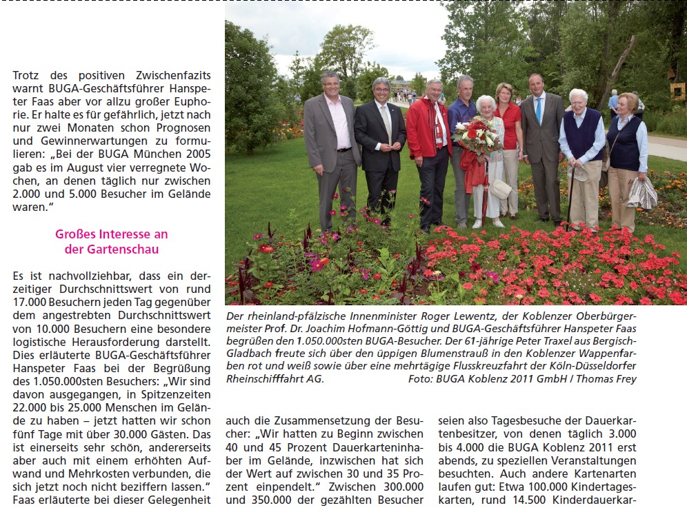 Blick aktuell, Koblenz verwandelt, BUGA-Sonderillustrierte des Krupp Medienzentrums, Koblenz, Juli 2011, S. 46/47