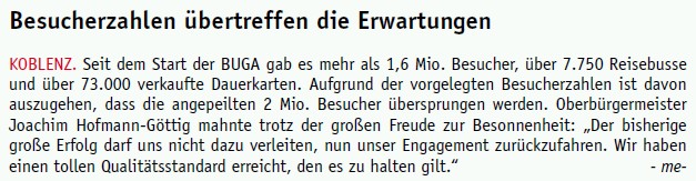 Wortlaut und Bild der Presseinformation der Stadt Koblenz, 21.7.2011