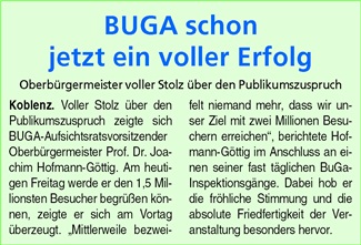 Mit Interviews von BuGa-Geschäftsführer Faas und OB Hofmann-Göttig