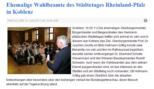 Dienstag 14.06.2011: Auszug aus Terminen von OB Hofmann-Göttig (ansonsten weitere Termine in Koblenz):