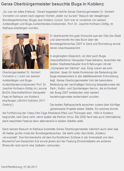 Auszug: Wortlaut und Foto der Presseinformation der Stadt Koblenz 06.06.2011