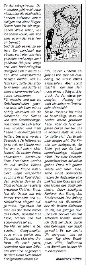 (Laufende Nummer und Erscheinungsdatum im „Schängel“: Überschrift in der Druckfassung, s.u.